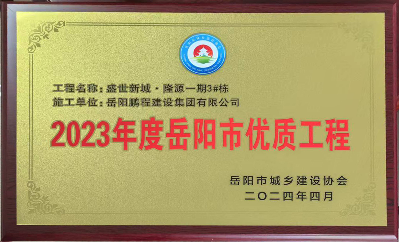 2023年度岳陽市優(yōu)質工程--盛世新城隆源一期3#棟